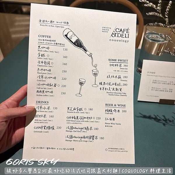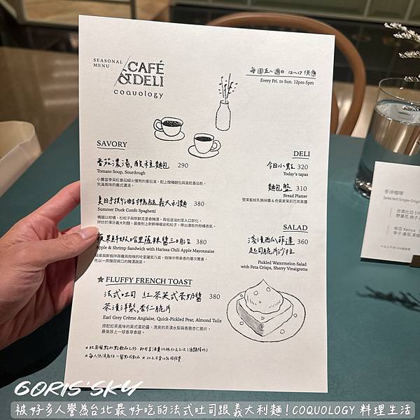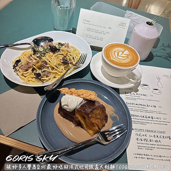 吃過嗎?全新菜單!!!!!現炒義大利麵真的太好吃了!!!!!!我真的是經過超多次都不知道這家COQUOLOGY 料理生活有在賣吃的!我以為是生活雜貨之類,後來看到好多人推他們家的法式吐司跟義大利麵,我就想說我去的話要吃吃看,結果我從3月4月5月之類去了好多趟,從一開始撲空原來12點才開始用餐,到又撲空只有四五六日供餐,到後來好像6月整個暫停供餐的,終於在7月被我吃到哈哈哈哈哈有夠千辛萬苦!