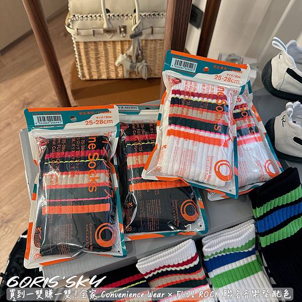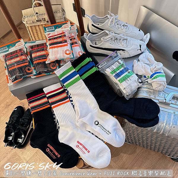 就這!全家這次限定販售的全家 Convenience Wear × FUJI ROCK 聯名音樂祭配色襪子,其實還有毛巾,但我比較愛襪子,聯名款一雙149,基本款129