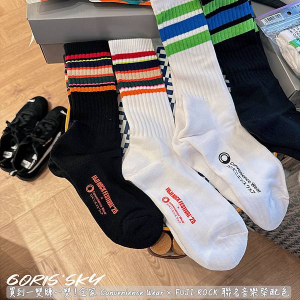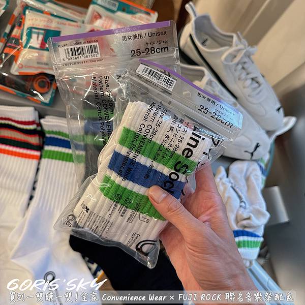 這次全家 Convenience Wear × FUJI ROCK 聯名音樂祭配色襪子則都是台灣製的