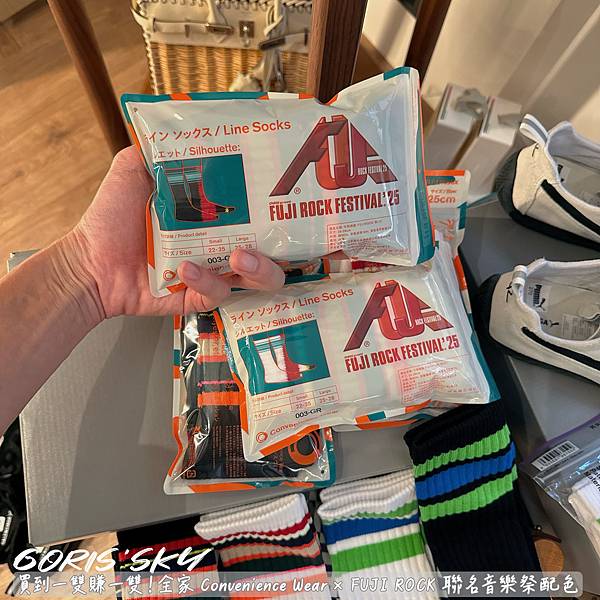 全家 Convenience Wear × FUJI ROCK 聯名音樂祭配色襪子分22-25cm、25-28cm兩種尺寸,但基本上都能穿的,有啥買啥就好!我是覺得很好看啦!哈哈哈