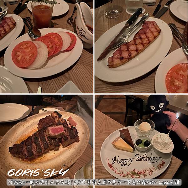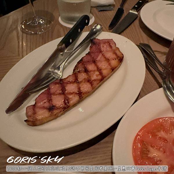 殊不知殊不知!二訪惠比壽Peter Luger後,真心最推蕃茄跟厚培根!會讓人驚嘆的有夠好吃!番茄不知道怎麼回事有夠水兩片夾洋蔥加醬當漢堡吃非常好吃!也可以配著培根、牛排吃;厚培根真的去哪切的哈哈完全顛覆對培根的既定印象!油嫩嫩的Q彈Juicy的超超超好吃!牛排不會不好吃,但我吃過同樣概念的六本木的班傑明,我覺得班傑明更好吃!但惠比壽Peter Luger的配菜,包括烤花椰菜真的超大盤很好吃外,最最最推也是烤蘑菇!我超討厭蘑菇的!但這非常好吃!完全沒有噁心蘑菇味道!反而那個手寫生日蛋糕盤沒有到很好吃哈哈哈看你自己在不在意儀式感,拍照打卡用的!