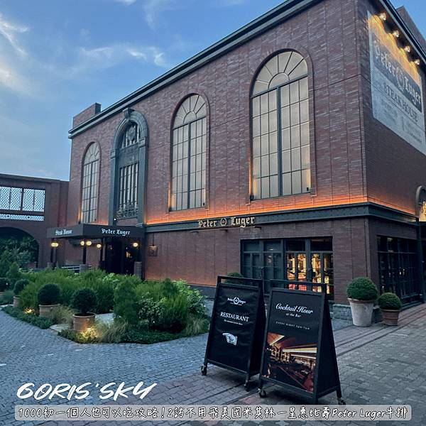 剛好兩次來吃惠比壽Peter Luger都是晚餐,所以可以進入前先拍到黃昏還亮亮的惠比壽Peter Luger牛排外觀,建築物真的很美。