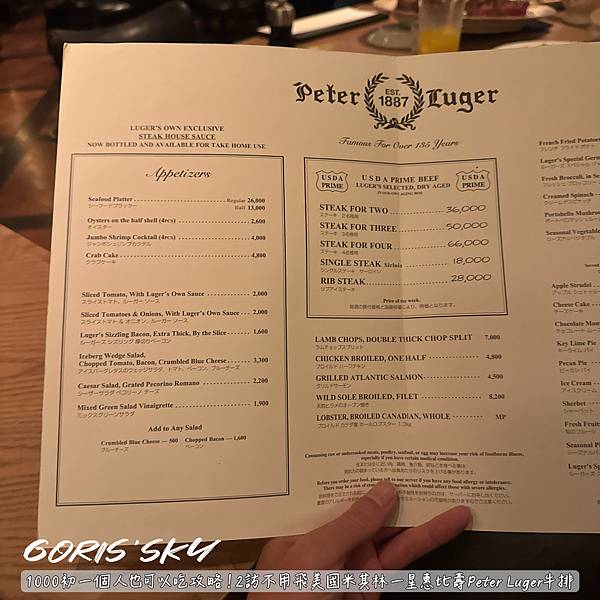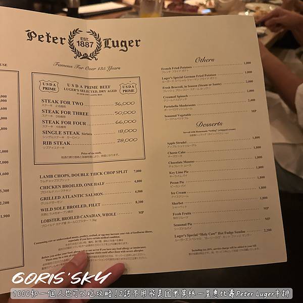 然後這是惠比壽Peter Luger牛排晚餐菜單,晚餐基本上就至少要兩個人比較好