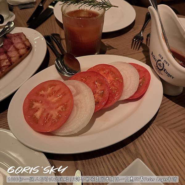 我自己也覺得惠比壽Peter Luger牛排這道菜很荒謬!沒看錯,就是4片蕃茄、2片洋蔥,2000日圓,400多台幣,我也覺很荒謬,但我看很多人去惠比壽Peter Luger牛排都會點都會吃,太好奇了吃吃看!