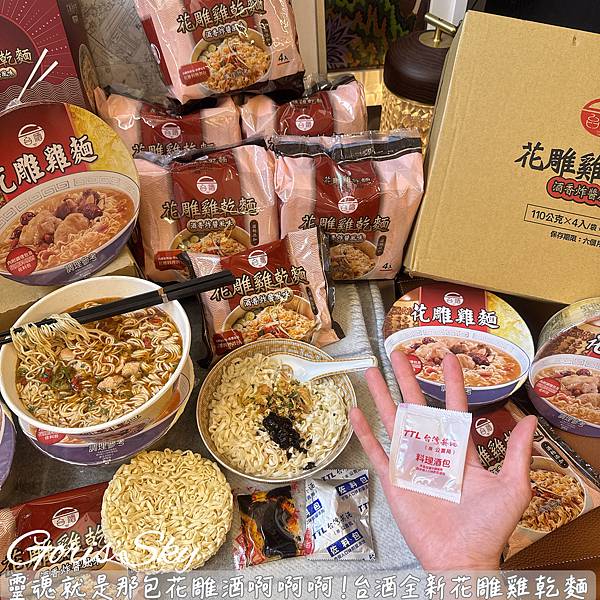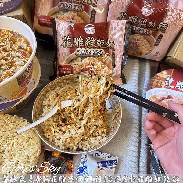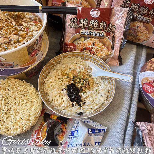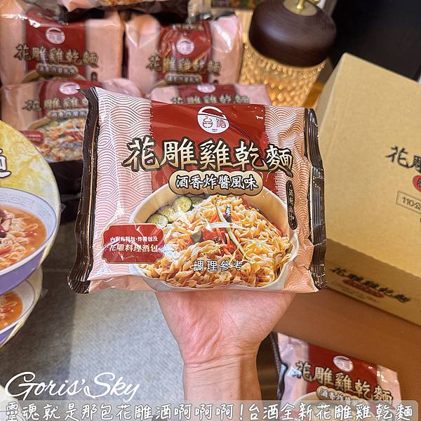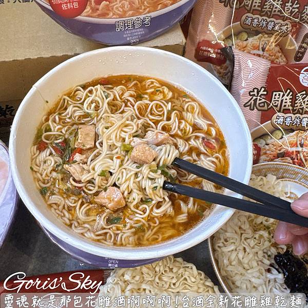 這個被譽爲酒味泡麵代表,甚至一堆外國人來台表示心目中最愛的泡麵就是花雕雞麵13年來,首度推出乾麵版!哈哈哈哈老實說,因為名字同樣叫「花雕雞乾麵」但我個人實在覺得兩者完全不一樣東西,因為麵條就不一樣,調味也不一樣,乾麵也沒有肉塊,但共同的靈魂就都是那包花雕酒!泡完最後淋進去的酒香四溢,這真的是靈魂,不然就好像在吃維力炸醬麵而已哈哈哈