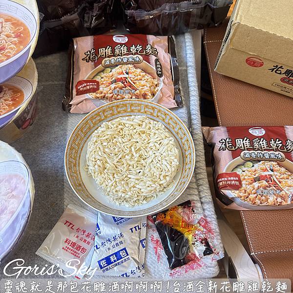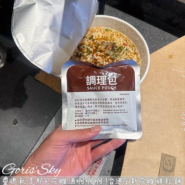 其實台酒花雕雞乾麵我打開就覺得當下跟我想像中的花雕雞麵不太一樣了。