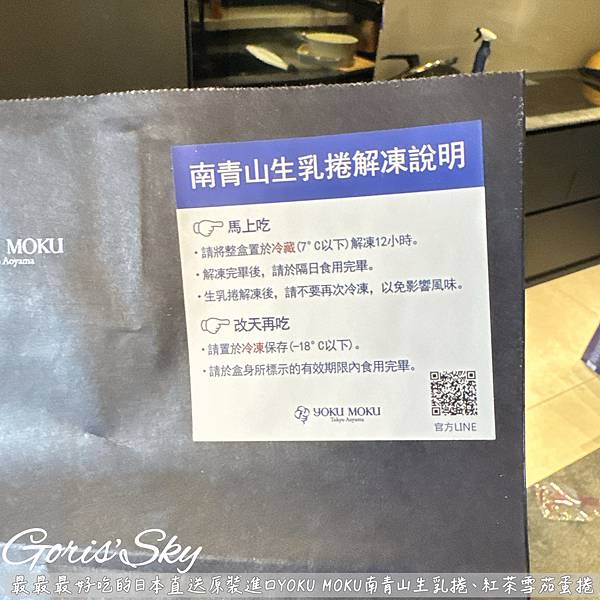 而YOKU MOKU南青山生乳捲解凍說明務必詳閱,放在冷藏解凍12小時外,解凍完畢隔日食用完畢,解凍不建議再冷凍