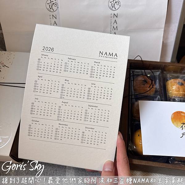 NAMA和生蛋黃酥紙盒背面很有巧思的放上2026年曆,可以留下來運用