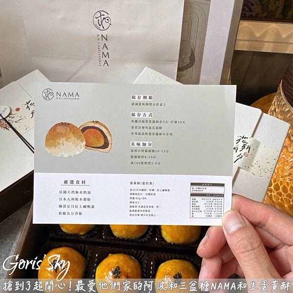 NAMA和生蛋黃酥他們家包裝一向很有水準,質感很好,真的也是很漂亮,自己吃送禮都很合適