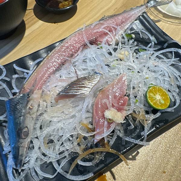 真的考倒我的好不容易找到家日料價格也合理,趕上日本秋刀魚的尾聲!!!!!!!!實現我媽63歲想吃好吃的秋刀魚的生日願望(哈哈哈哈哈好好笑!)我只能說,好好吃喔!!!!!!!!!會做的師傅,將新鮮的秋刀魚,整條仔細去刺去骨,然後稍微炙燒過後,整條日本的秋刀魚我只能說......有夠好吃!有夠鮮甜有夠鮮美!!!!!