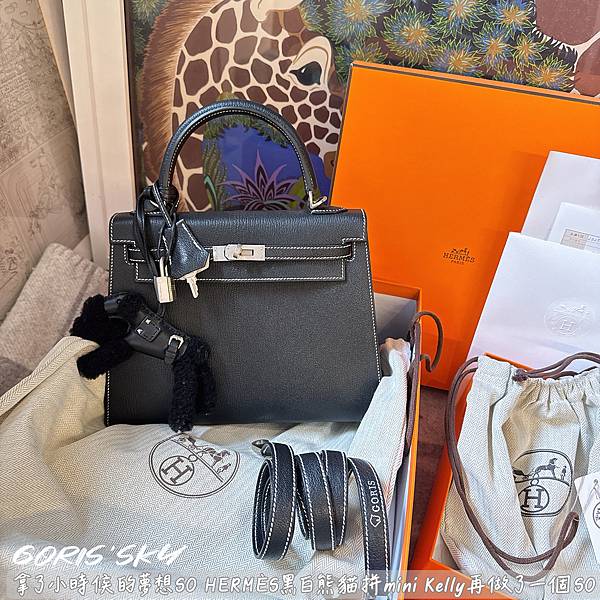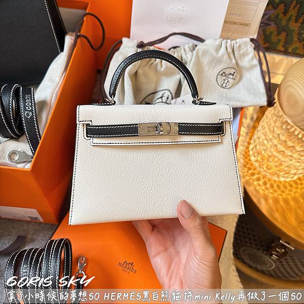我第一個SO特殊訂製就是黑色山羊皮Kelly 25走白線消光金扣在台灣做的,當時真的也是經過很大很大的努力才拿到,真的覺得太可怕了,想說一輩子應該也就只會做一個SO就做最實用也相對特別的,但去年就順順地在日本買,大概也是2年多一點,很多也都拿過了,Sales就問要不要做SO,想說日本帳號有一個SO對以後拿包包也比較有幫助就說ok,當時我記得我也是拿了一個mini Kelly二代然後也做一個SO就一起的,所以我就做了我20幾歲當時看到覺得非常喜歡的黑白熊貓拼的mini Kelly二代對比色反走線銀扣山羊皮,20幾歲當時看到真的好喜歡後來才知道是SO,殊不知走到現在我自己也實現了20幾歲當時的夢想!