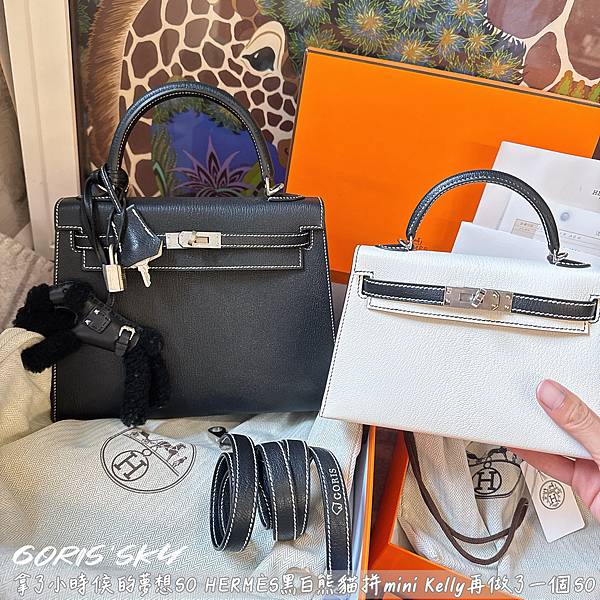 早!!!速度開箱恭喜我一下!湊齊我的名字Goris跟Sky了!!!是我20初頭歲夢想黑白熊貓拼山羊皮mini Kelly !!!!!!!