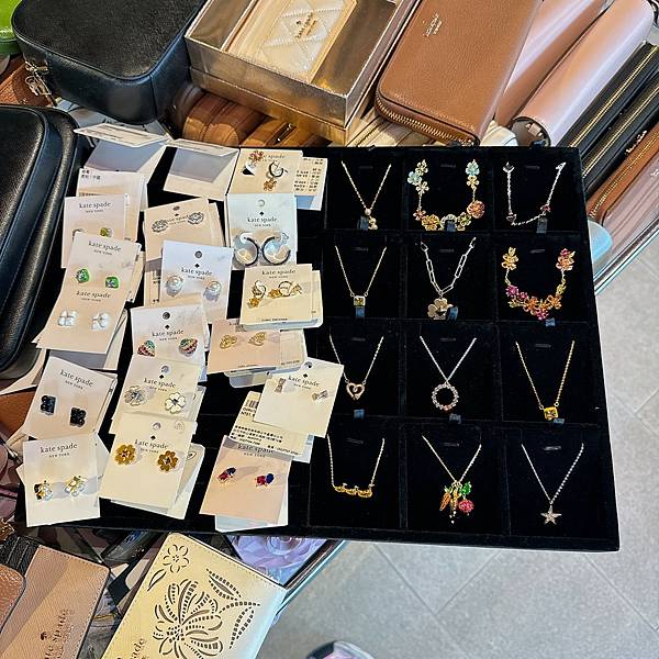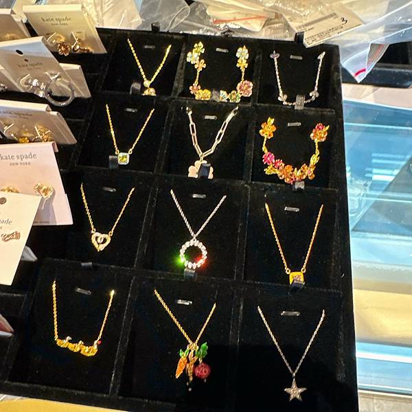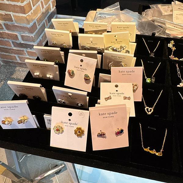 還有一個大大大大大大推!就是珠寶飾品!!!!!我覺得很賭喔人會忽略!因為耳環、項鍊看起來真的太小了!!!!被我現場逛到撿到,一對特賣價格真的呼天喊地馬上叫我朋友說這也太便宜!耳環超超超超超重點,真的可以所有款式都入!很kate spade,特賣價才幾百元而已可能兜底你去買韓貨都還便宜,但你直上美國紐約kate spade大牌!項鍊也超超超可愛!這些閃亮亮、亮晶晶,百搭隨便都好看的精緻小物真的是這次特賣大大大寶藏!