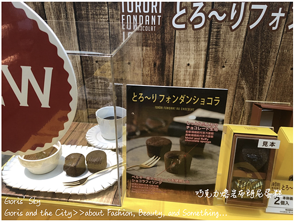 有時候真的是蠻佩服日本人的講究和用心,就算沒有提供試吃,但也會在一旁做展示,讓你看得到,好似感受的到那實際的Tokyo Torori巧克力熔岩布朗尼蛋糕的感覺,講究到連茶都有備好這樣的完整陳設。