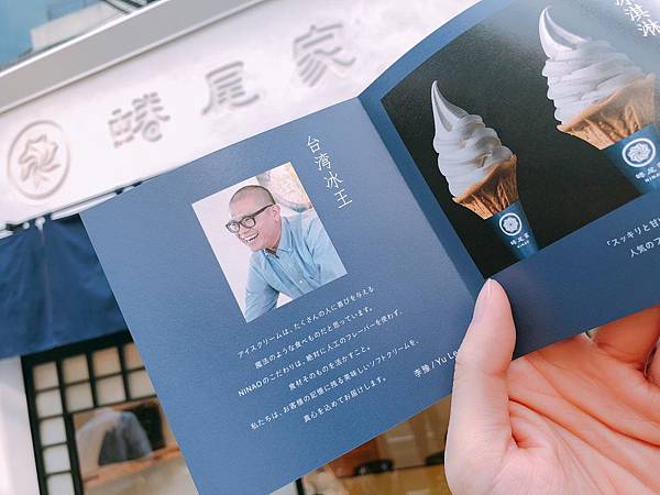 首先你會看到這次針對蜷尾家於日本東京開店後,都採用了全新的深藍色元素裝飾、搭配,從門簾到冰淇淋本身,都可以看到全新的深藍色搭配,一拍一打卡,都讓人能夠很一眼明見是日本東京店的蜷尾家,其中的首個打卡點,就是門口的招牌。