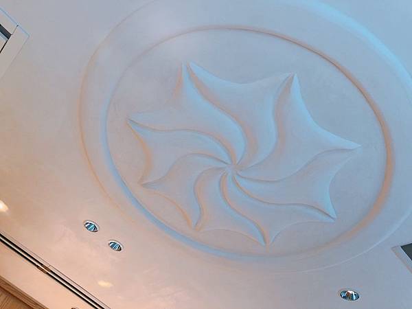 拜託你一定要抬頭!因為天花板有一個超大蜷尾家的浮雕LOGO,非常立體也非常震撼。