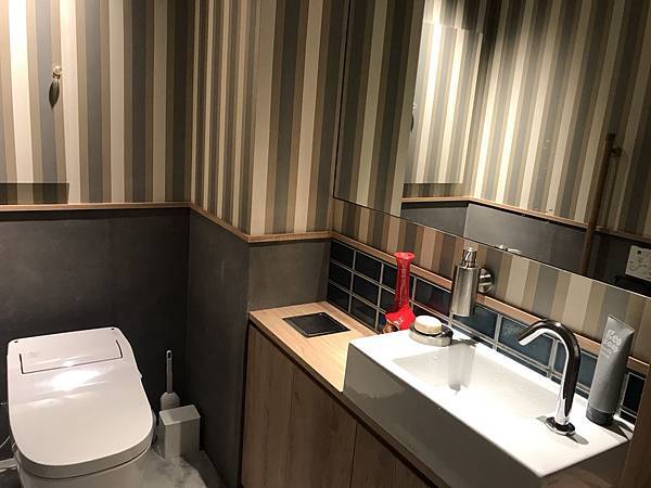 其中,有很多可能會漏了的一個拍照區,就是廁所!如果你有去過日本玩,應該多少會感受到,日本很多店家多是沒有提供廁所,甚至是也是廁所不外借,我一開始也以為可能蜷尾家的東京店可能都會以外帶為主,廁所也不會是重點,結果廁所設計的一整個質感、舒服,如果你有來到的話,就算洗洗手也都要進來瞧瞧!