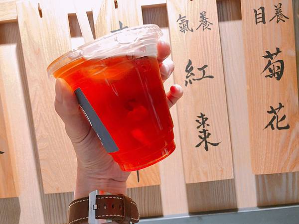 除了當日提供茶飲本身的茶凍口味,還可以加價升級為台灣白菊花和特選紅棗兩種口味選擇,加入日本特製冰糖和枸杞製成的茶凍飲。