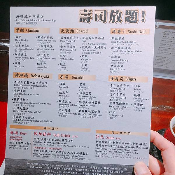 這就是這次三燔本家的頂級壽司吃到飽的菜單,上面的全都可以無限享用,從軍艦、炙燒、卷壽司、握壽司、手卷、爐端燒等...一共40種頂級料理任你點,當然,價格其實不太便宜,所以該有的高級食材,無論是海膽、干貝、牡蠣、蟹等...該有的都不會少。